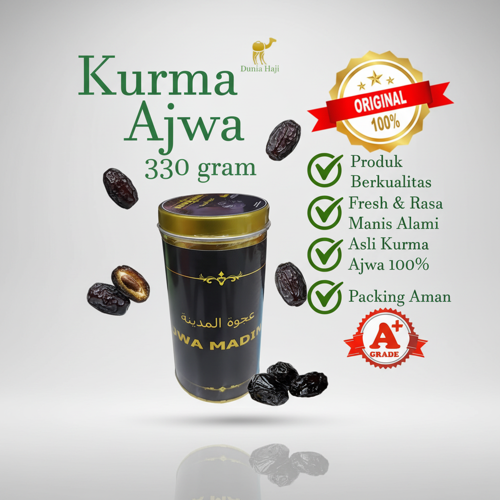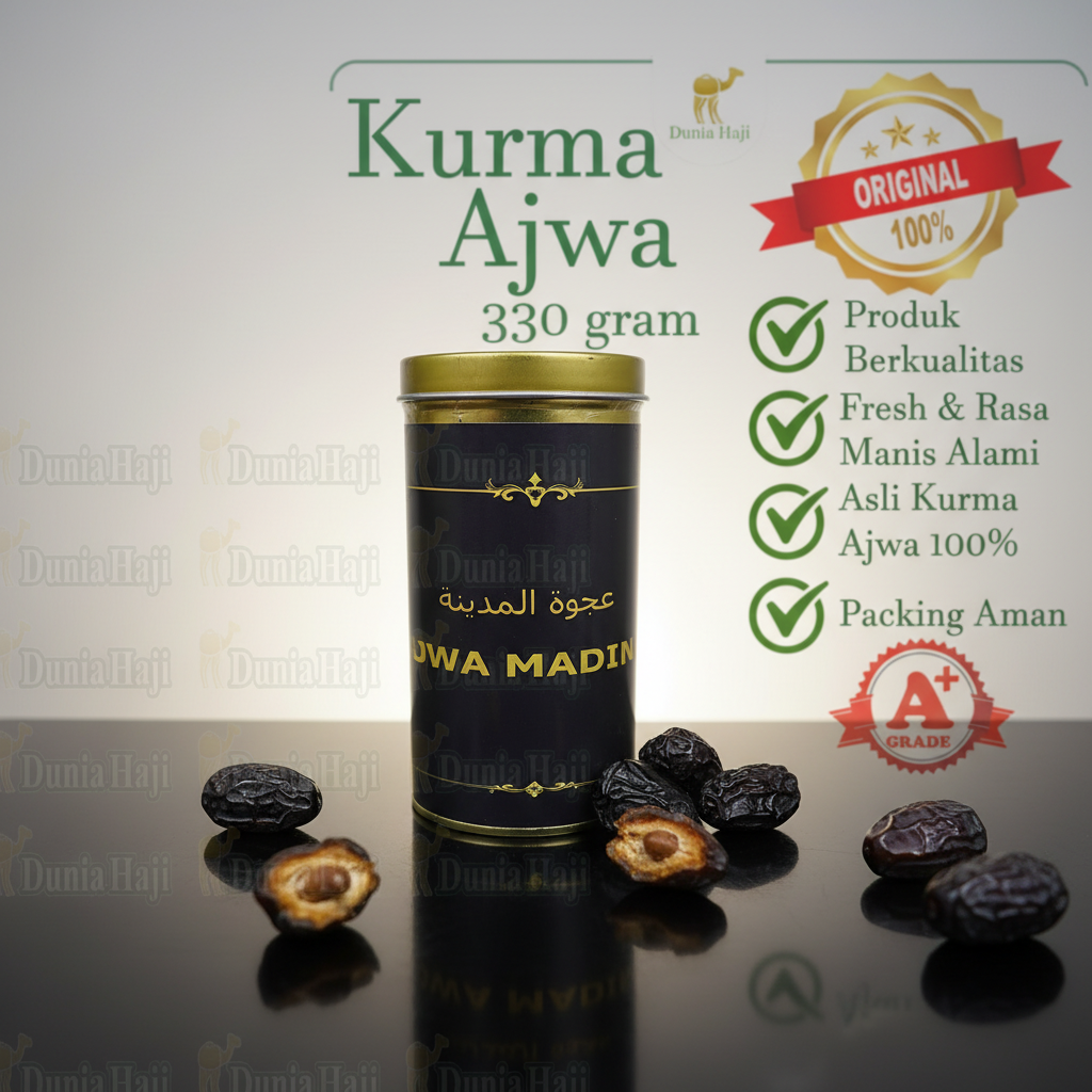 Rasakan kemurnian dan keberkahan dari Kurma Ajwa Kaleng 330gr Asli Madinah.