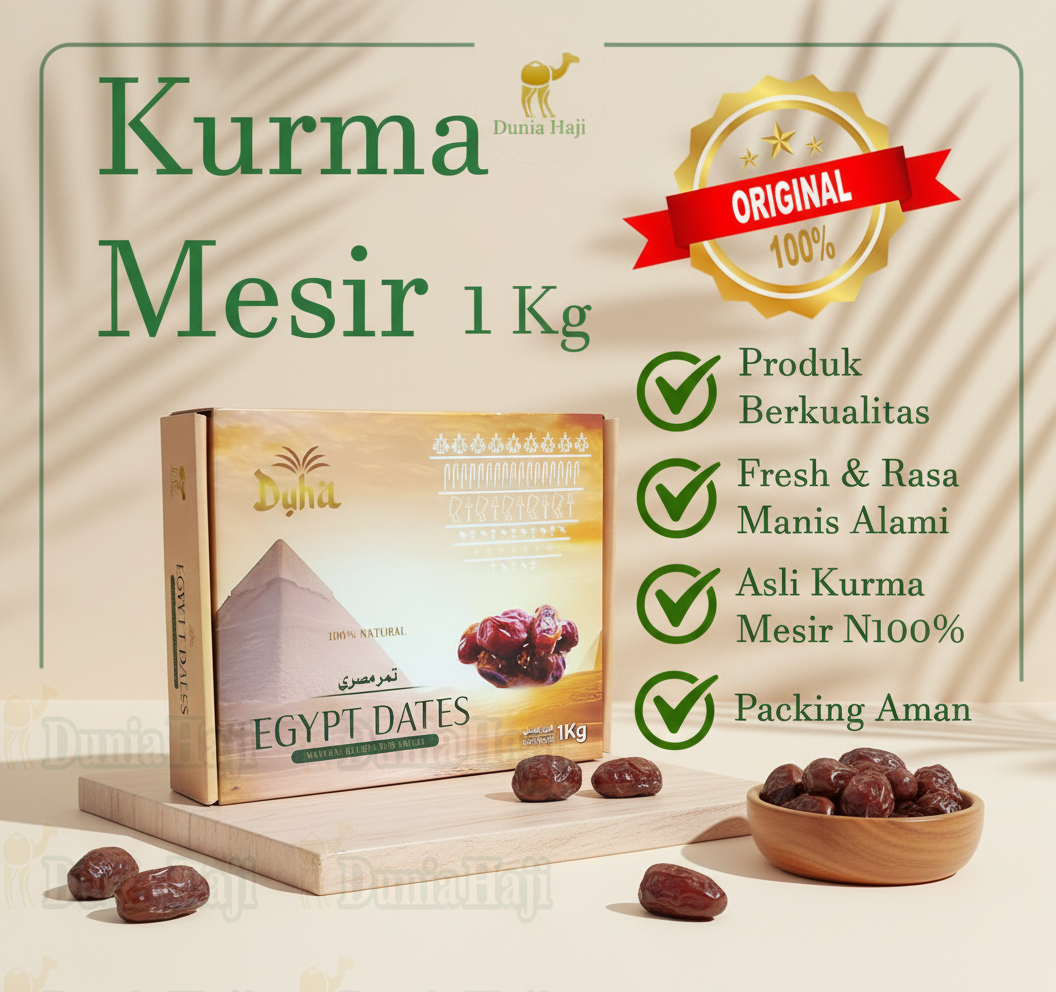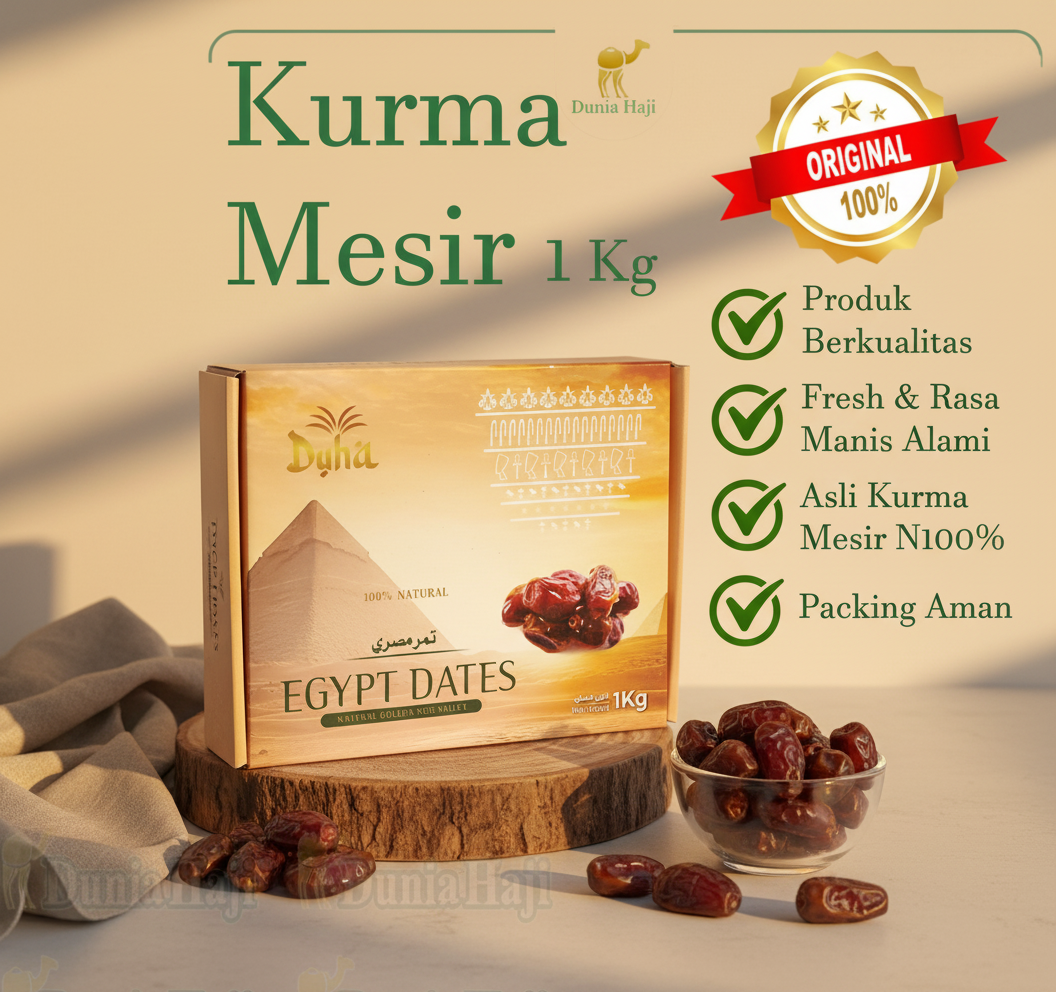 Nikmati kelezatan khas Timur Tengah dengan Kurma Mesir Premium 1 Kg, kurma pilihan terbaik dari tanah Mesir yang dikenal dengan rasa manis alami, daging tebal, dan tekstur lembut.