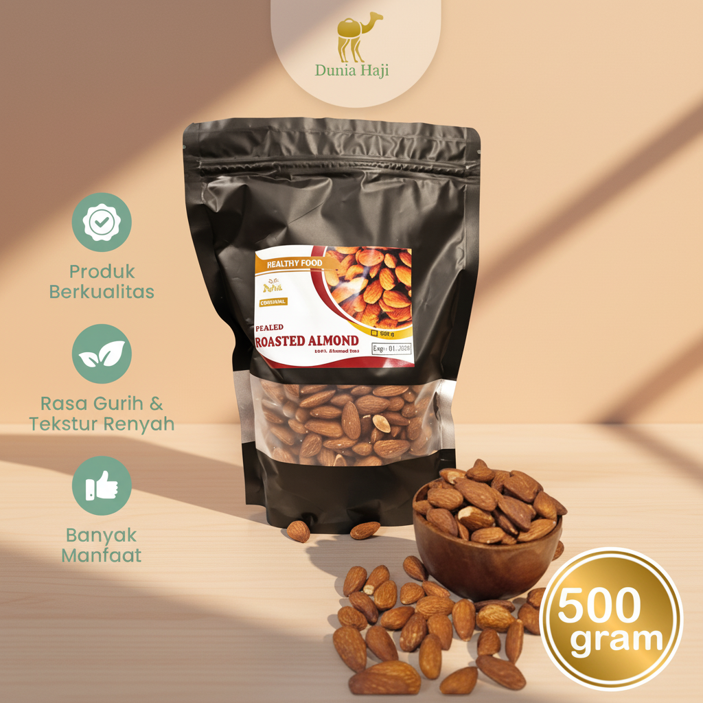 ✨ Rasakan kerenyahan dan manfaat alami dari Kacang Almond Kupas Roasted Premium – lezat, sehat, dan penuh keberkahan!