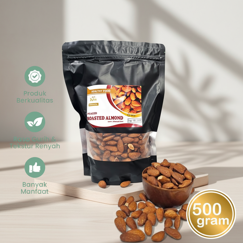 🥜 Kacang Almond Kupas Roasted Premium – Gurih, Renyah & Sehat Alami 🥜