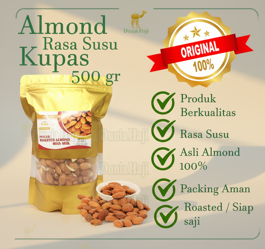 Nikmati sensasi baru dari Kacang Almond Kupas Panggang Rasa Susu, perpaduan sempurna antara kerenyahan almond panggang premium dan kelembutan rasa susu yang creamy dan nikmat.