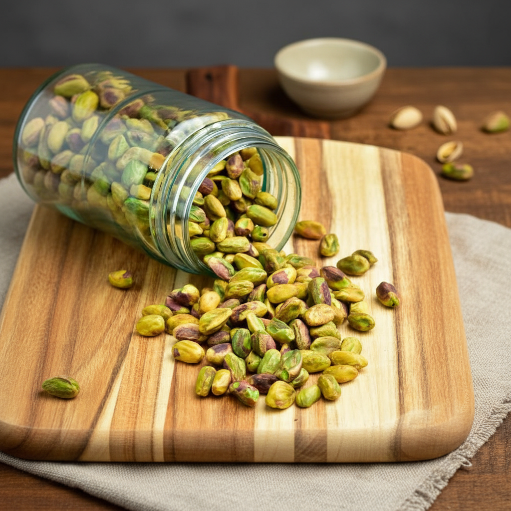 Nikmati kelezatan alami dari Kacang Pistachio Roasted Kupas Premium, kacang pistachio pilihan terbaik yang sudah dikupas bersih dari kulitnya, lalu dipanggang sempurna tanpa minyak untuk menjaga cita rasa gurih dan renyah alami.