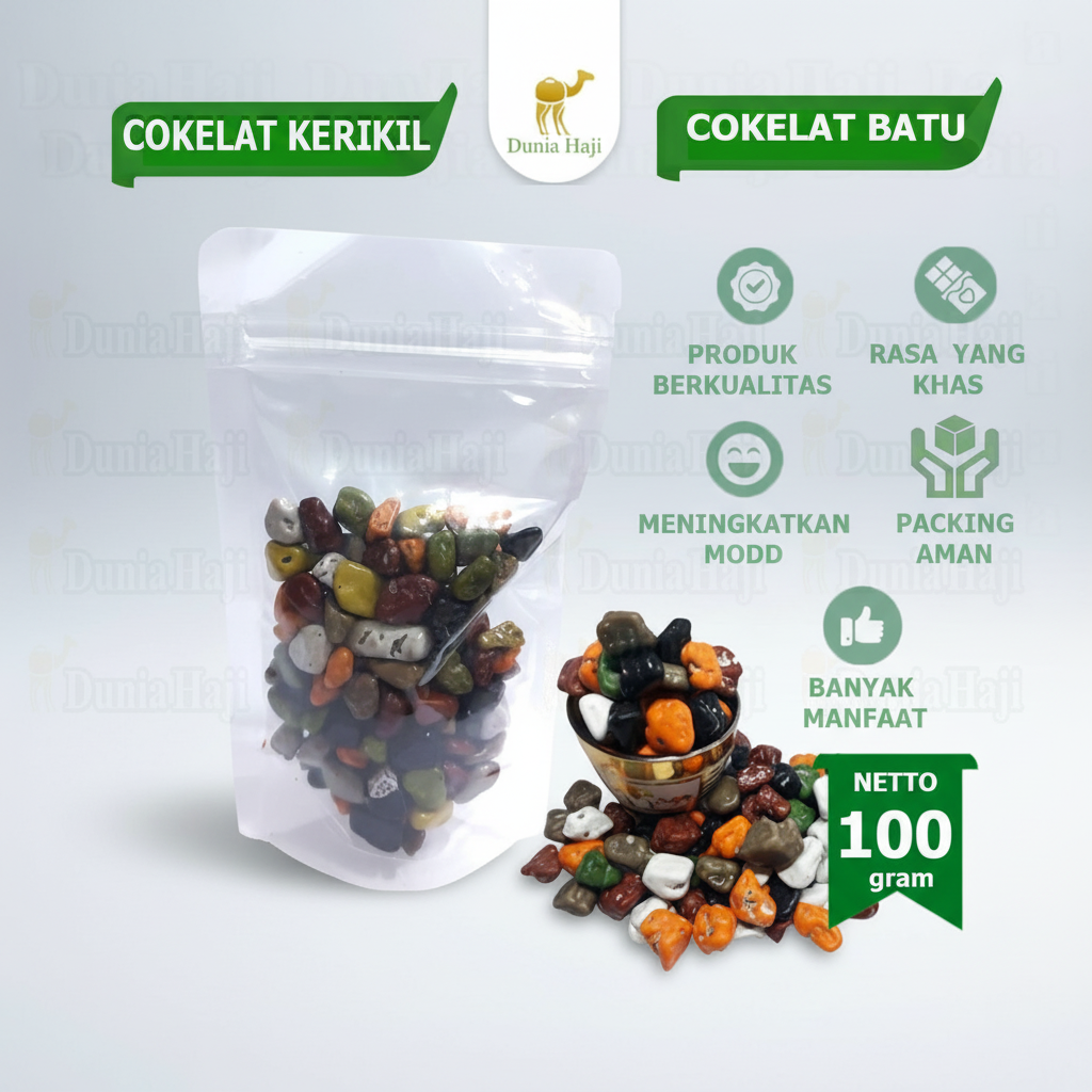 Nikmati sensasi cokelat istimewa khas Timur Tengah dengan Cokelat Arab Kerikil Turki (Chocolate Stones) dari Dunia Haji.
