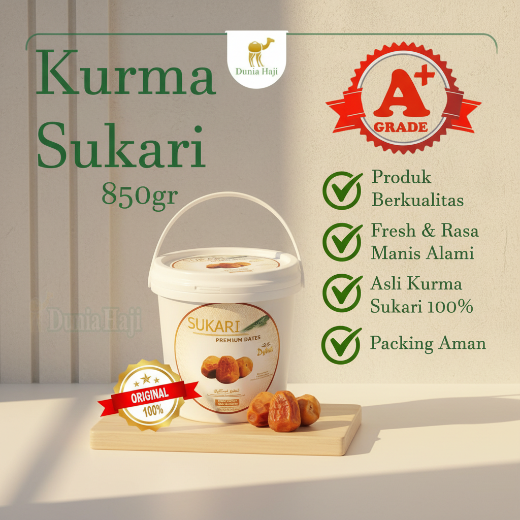 Setiap butir kurma dipetik langsung dari kebun terbaik di wilayah Al-Qassim, Madinah β Saudi Arabia, lalu dikemas dalam ember eksklusif 850 gram yang higienis dan elegan.