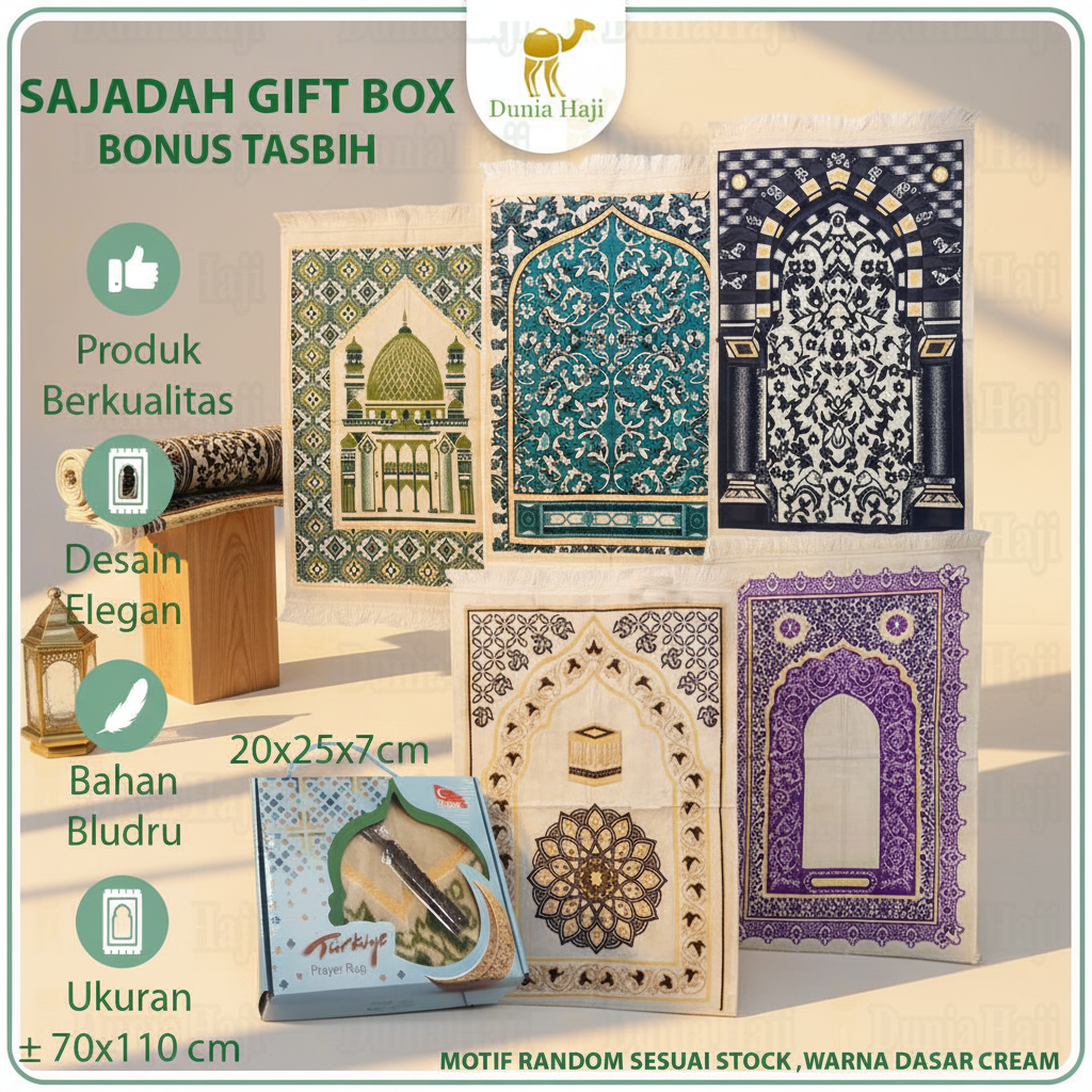 Sajadah Gift Box Premium — indah, bermanfaat, dan penuh makna.