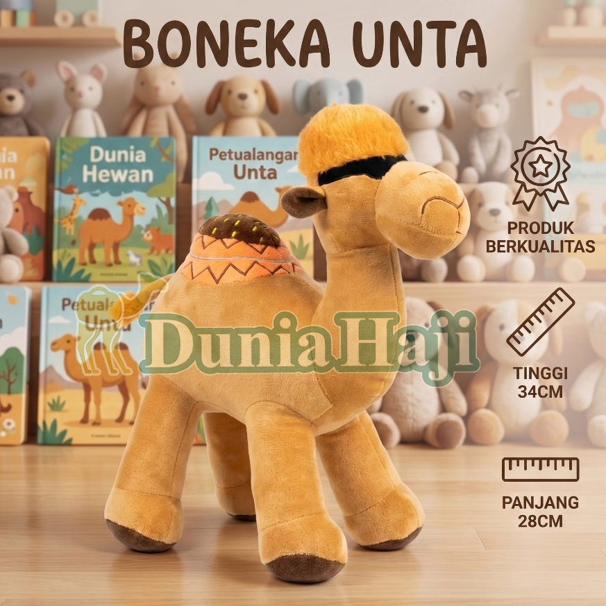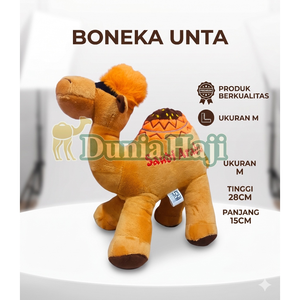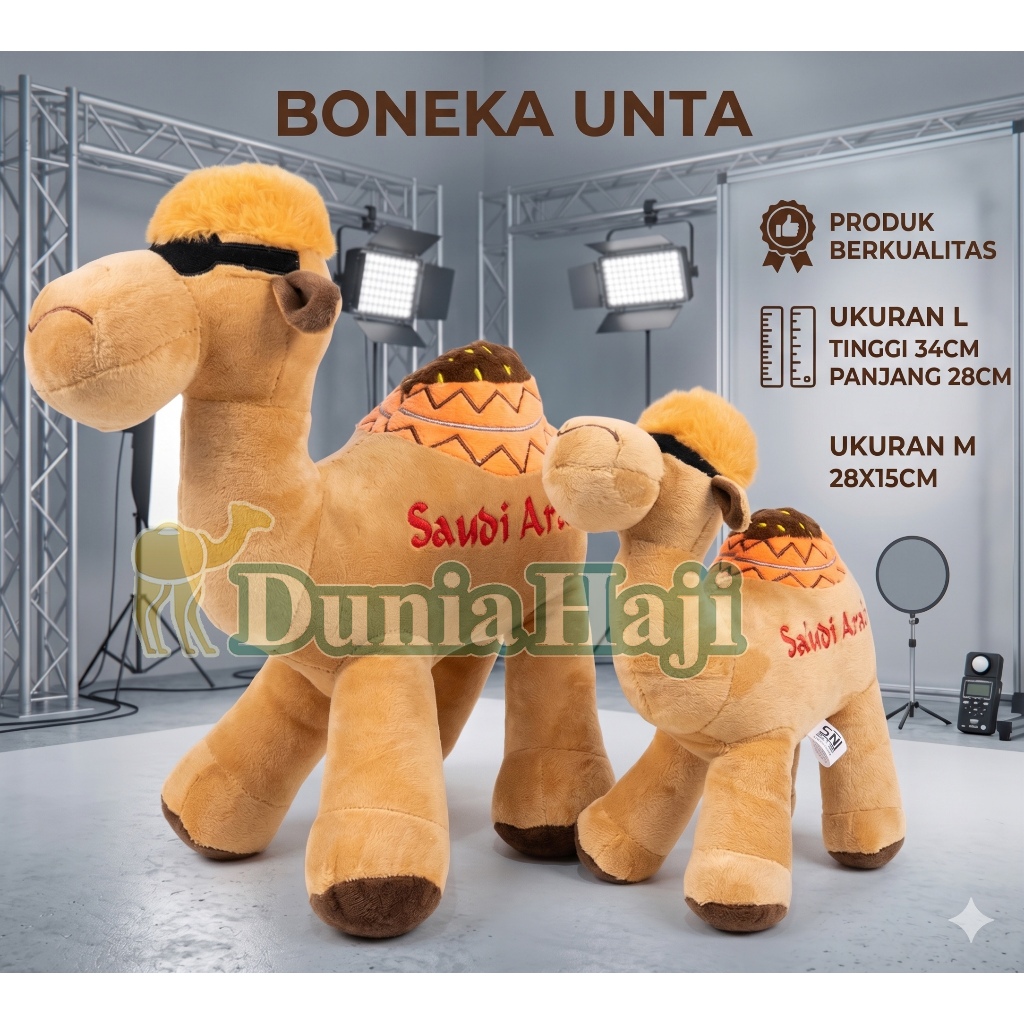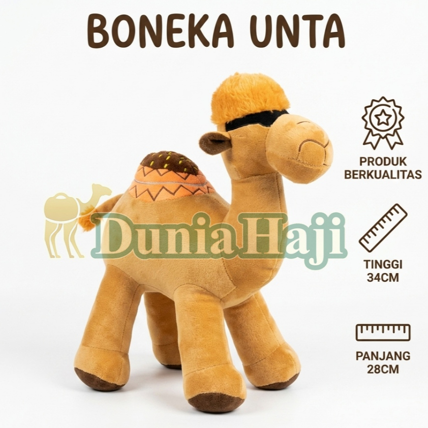 <p>BONEKA UNTA SAUDI ARABIA - Premium & Authentic</p><p>Bawa pulang kenangan manis dari Tanah Suci dengan Boneka Unta Saudi Arabia kami! Didesain dengan detail yang menggemaskan, boneka ini sangat cocok dijadikan oleh-oleh haji/umroh, kado spesial, atau dekorasi unik di rumah Anda.</p><p>Kenapa Harus Memiliki Boneka Ini?</p><p>Kualitas Premium: Terbuat dari bahan bulu halus yang lembut di kulit dan isian kapas sintetis berkualitas tinggi yang empuk.</p><p>Desain Ikonik: Dilengkapi dengan aksesoris kacamata hitam yang stylish dan bordir tulisan "Saudi Arabia" yang khas.</p><p>Aman untuk Anak: Sudah berlabel SNI, sehingga aman dimainkan oleh anak-anak.</p><p>Tersedia dalam 2 Ukuran: Anda bisa memilih ukuran yang sesuai dengan kebutuhan koleksi Anda.</p><p>Spesifikasi Produk:</p><p>Fitur </p><p>1. Ukuran L (Besar)</p><p> Tinggi34 cm28 cm </p><p></p><p>2. Ukuran M (Sedang)</p><p> Panjang28 cm15 cm</p><p></p><p> Hadiah: Sangat cocok untuk kado ulang tahun atau apresiasi anak.</p><p> Oleh-oleh: Solusi praktis bagi Anda yang ingin memberikan buah tangan khas Arab tanpa harus menenteng dari jauh.</p><p>Dekorasi: Mempercantik rak buku atau sudut ruangan dengan nuansa Timur Tengah.</p>