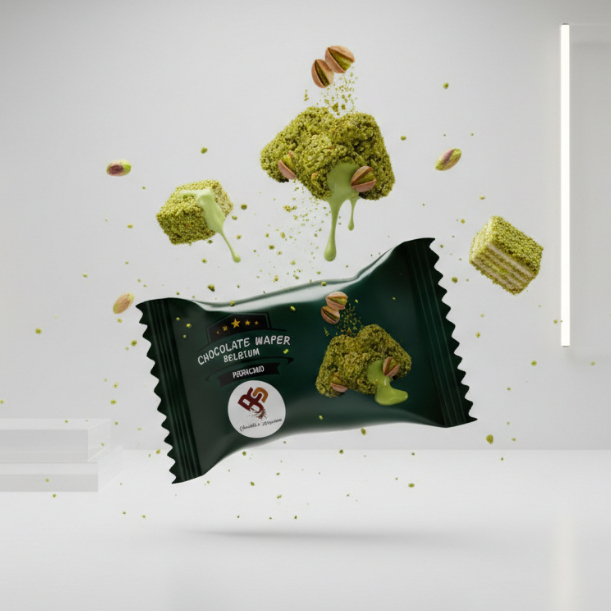 Nikmati sensasi coklat premium dengan isian krim pistachio lembut dan wafer renyah di dalamnya. Perpaduan rasa manis coklat Belgium yang creamy dengan pistachio yang khas, bikin nagih di setiap gigitan!