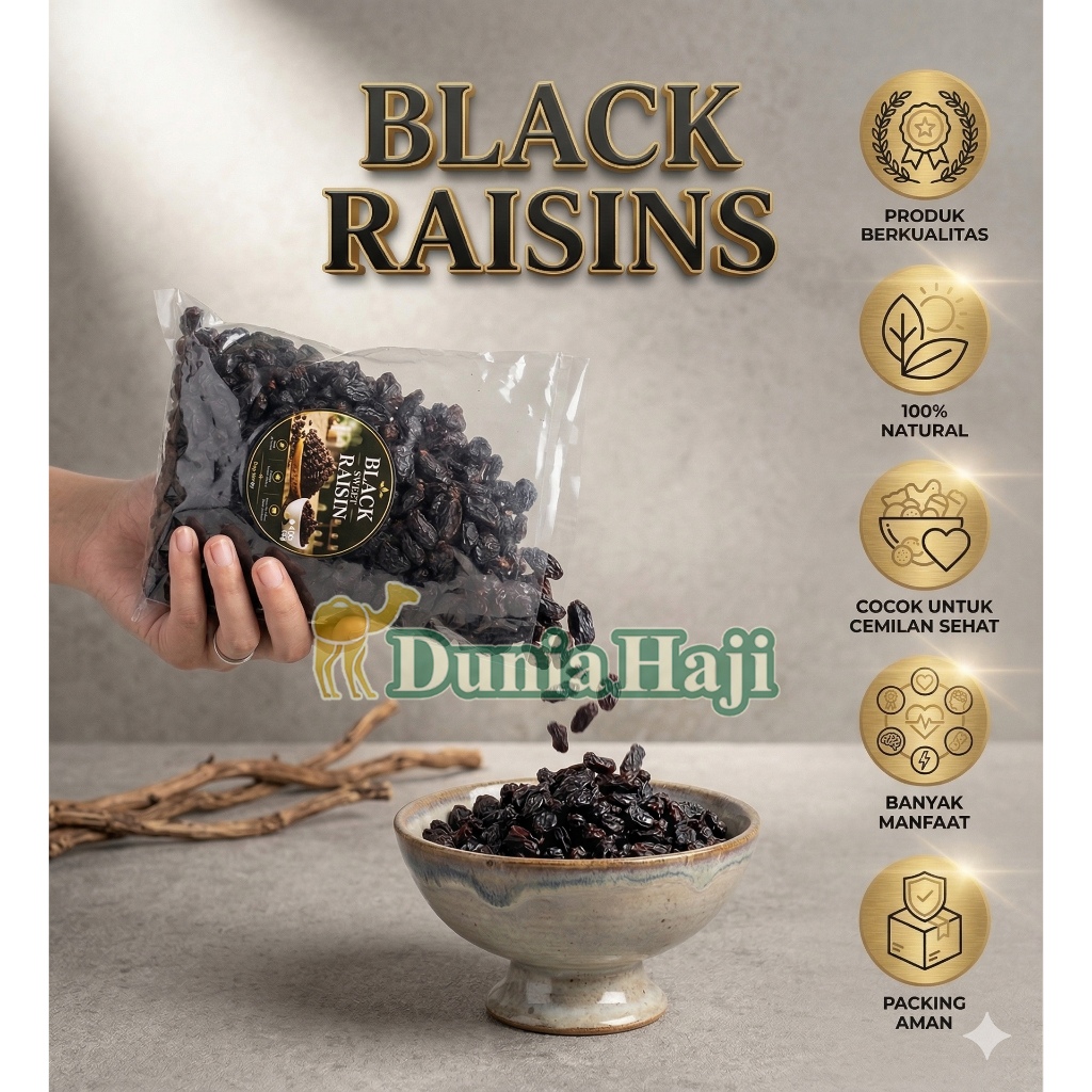 Kismis Hitam BLACK RAISINS Premium Manis Original Premium Camilan Enak Fresh Bernutrisi Oleh Haji Umrah