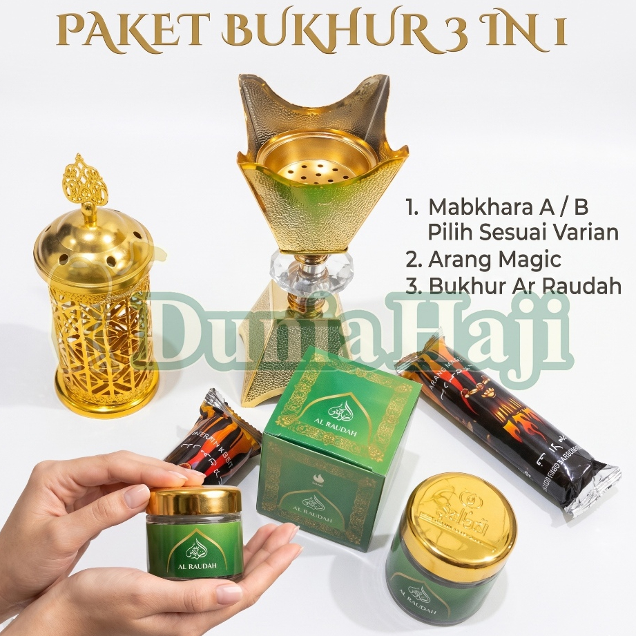 Paket Bukhur 3in1 Prapen Mabkhara Arang Magic Bakaran Lengkap Bukhur Salwa Qodha Ar Raudah Oud Al Haramain Abeer Al Qiswa Premium